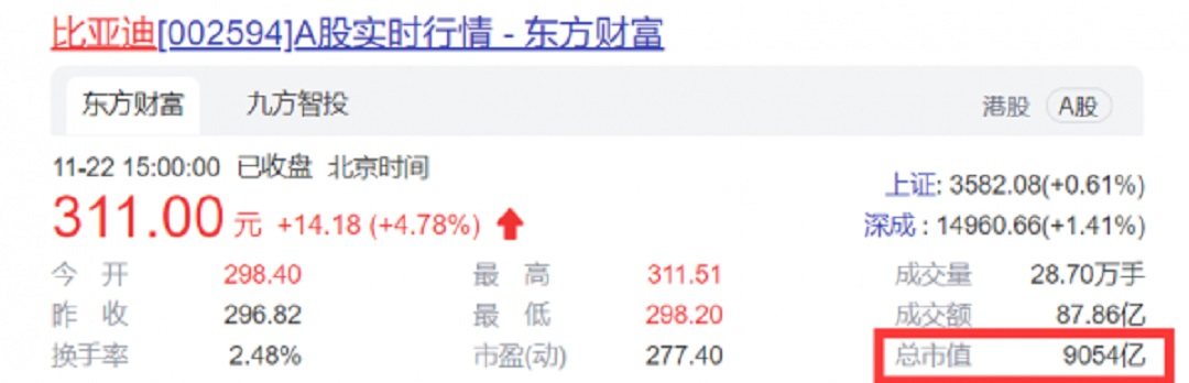 毫无疑问,得益于国家的政策扶持,如今中国汽车品牌已跻身新能源汽车的世界前列位置,其中比亚迪便是最突出的一位。截止11月22日收盘时,比亚迪的A股市值已经达到了人民币9054亿元,成功超越大众汽车集团,成为仅次于特斯拉、丰田的世界第三高市值汽车企业,这自然是值得庆祝的,因为这表明了外界的资本及投资者均一致看好比亚迪接下来的发展前景。