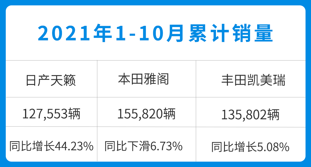 不过今年日产采用了以价换量的销售策略,天籁始终保持着2-3万元的终端优惠,而竞品车型受芯片短缺的影响,降低了优惠力度,从而导致天籁的性价比进一步提高,成为很多消费者更佳的选择。从销量数据上也能看出,今年1-10月份,天籁累计销量127,553辆,同比增长44.23%,与雅阁和凯美瑞的差距进一步缩小。