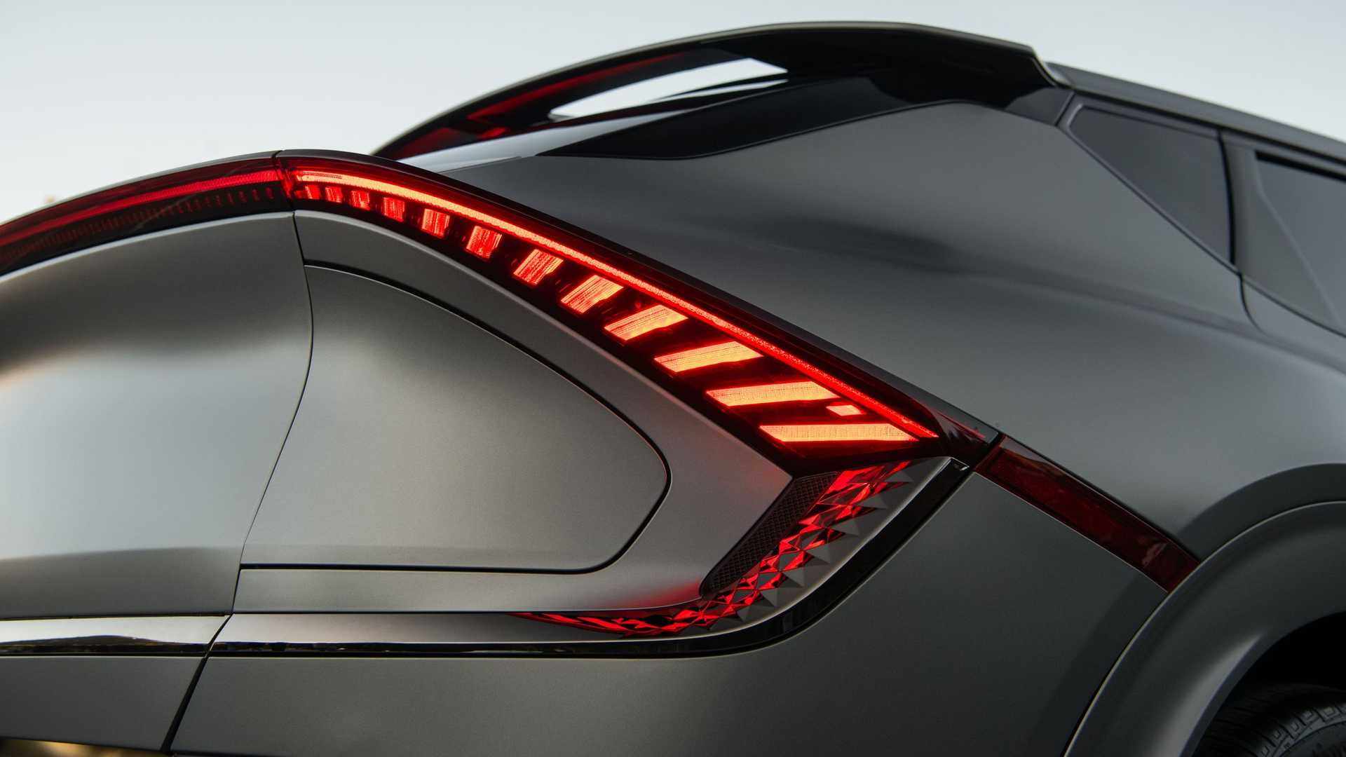 来到尾部,起亚EV6尾灯依旧采用时下流行的贯穿式尾灯设计,尾灯正式点亮后辨识度很高。