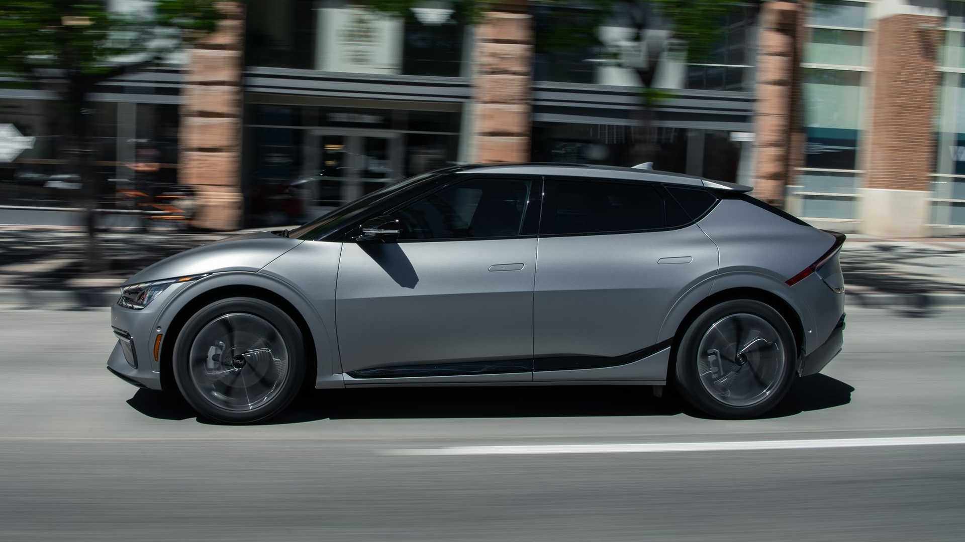 在车身侧面可以看到,起亚EV6符合当代电动车该有的简约设计,气势方面丝毫不输众多海外豪华品牌。车身尺寸看起来相当紧凑,2900mm的车身轴距确实让有点“麻雀虽小五脏俱全”的意思。