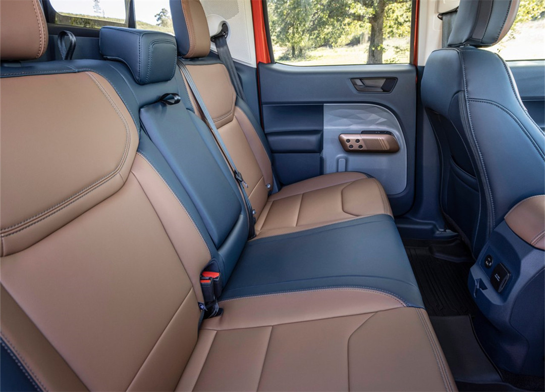 新车的配置对于一台皮卡来说相当丰富,以往后排不被重视的皮卡,在福特Maverick上提供了2个USB充电口以及120V 400W的电源接口,还有带两个杯架的中央扶手箱。全系标配了LED大灯、液晶仪表和8英寸中控屏幕,车机具有WIFI和FordPass智能互联功能。中配搭载Co-Pilot360 驾驶辅助系统,顶配还有B&O音响,舒适性配置拉满。