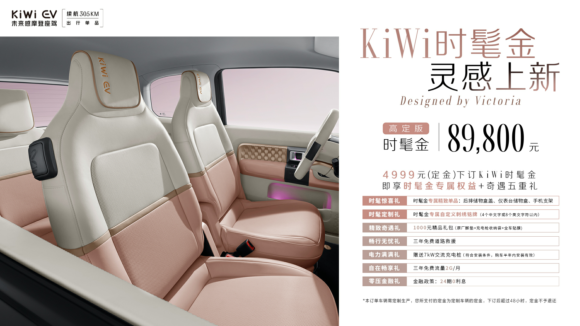 打破潮流界限,为时髦而生!KiWi EV“时髦金”内饰高定版携手创意总监宋茜正式上市,将进一步丰富用户时尚出行选择,带给广大都市人群更加时髦的出行体验,创造更多“奇遇”惊喜!