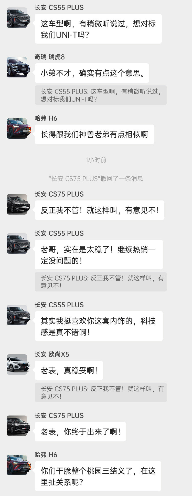 在非常普通的一天里,由于长安CS75 PLUS在国产SUV热销群上随意丢了几张图,瞬间引起了大家的热议!在各自忙碌的生活中,这个群好久没有这么热闹了,看看它们在群上说了些什么?