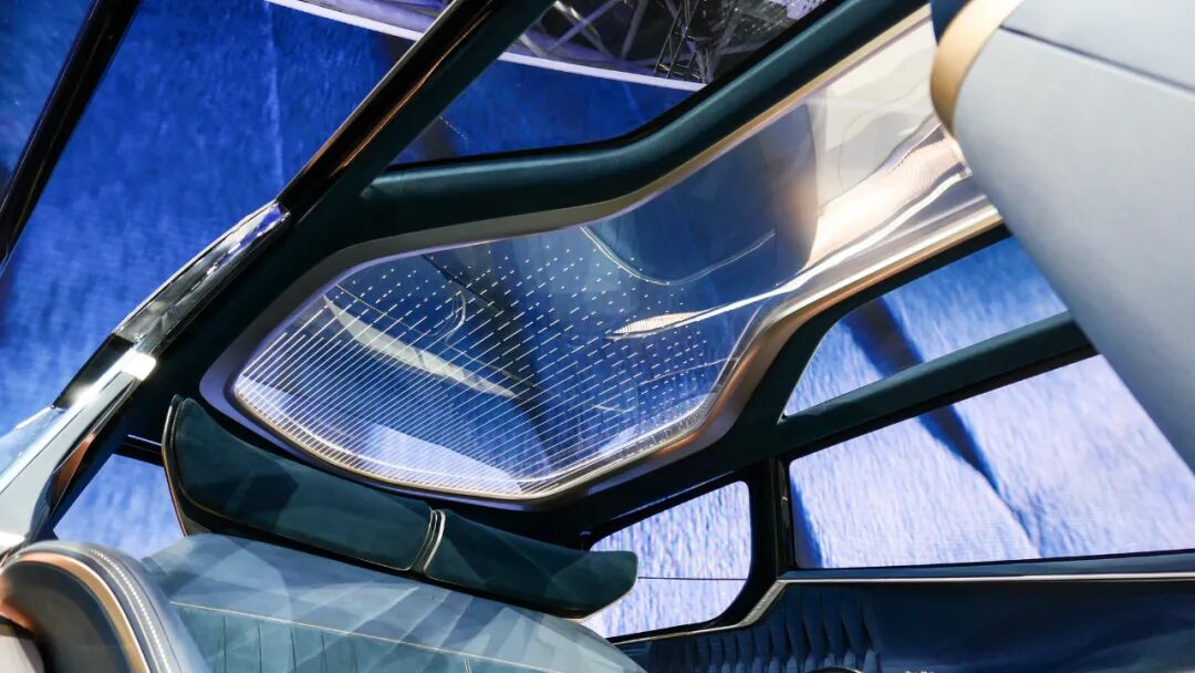 内饰设计就更加新鲜了,别克GL8旗舰概念车采用了透明的水幕穹顶全景舱,非常通透敞亮。