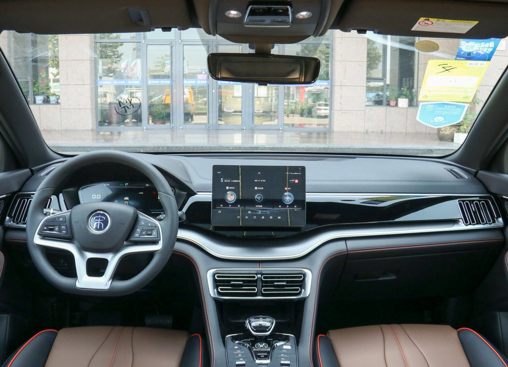 相对比其它家族成员,宋PLUS的造型显得更为低矮(实际上它的车身高度是要比宋Pro稍矮一点),整体呈现出更多的跑味以及时尚感。而在内饰方面,也依然离不开对运动感的营造。另外,整个车厢里面也有很多有趣的细节,譬如比亚迪招牌的可旋转中控屏,以及只出现在顶配车型,可以对显示内容进行定制的智能交互式面板等等。