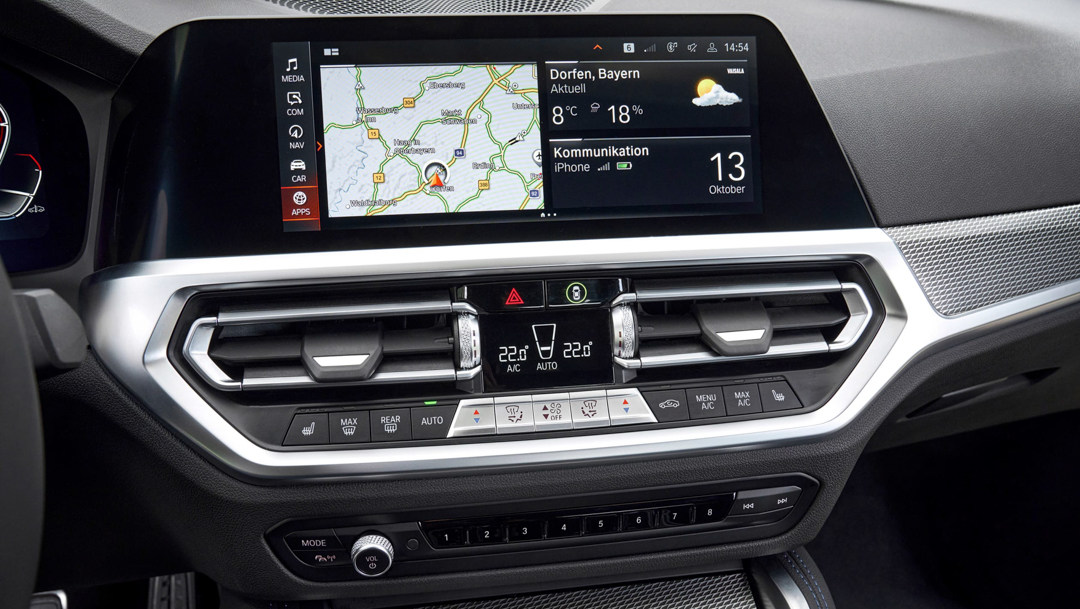 车机方面,10.25英寸中控屏内置了宝马iDrive 7系统,支持在线导航、多媒体播放、无线Apple Carplay互联映射等功能,整体的流畅性和显示效果都比较出色,属于同级领先的水准。