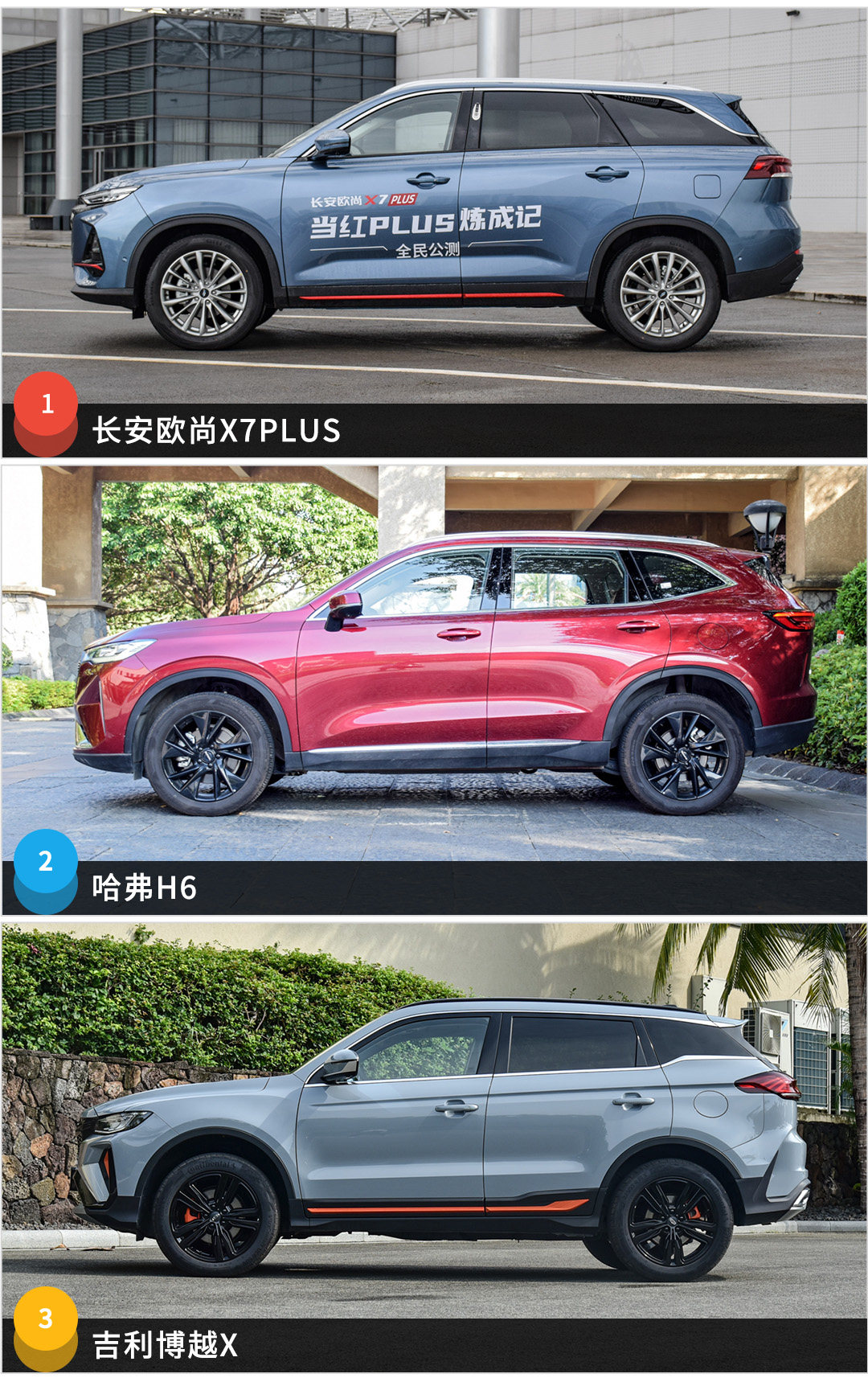 作为各自当家代表性车型,长安欧尚X7PLUS、哈弗H6、吉利博越PRO外观设计均是可圈可点。