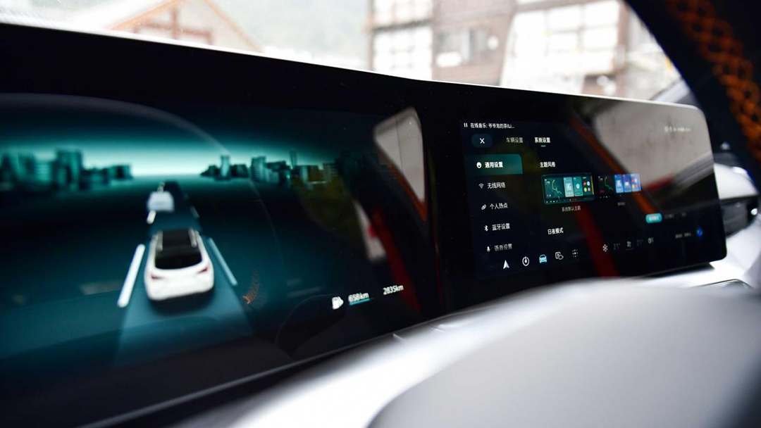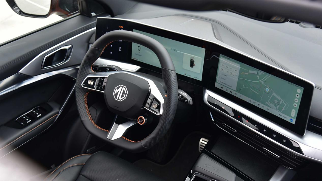 而MG ONE以驾驶者为中心的大屏通过双联屏与左侧触控板形成三折屏布局呈现出一种类似的沉浸式观感。