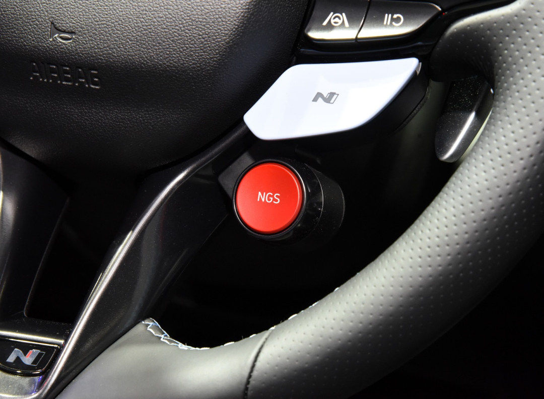此外,方向盘也采用了更运动的造型,除了配备性能车常见的换挡拨片,还多了两个专属的“N”按键,这就有点像宝马M Power上的M按键一样,可以一键启动预设的自定义驾驶模式。而且在右侧还有一个NSG按键,在按下之后,可以短时间提升发动机的压力值,增加额外10匹马力,与保时捷的“真男人模式”有异曲同工之妙。