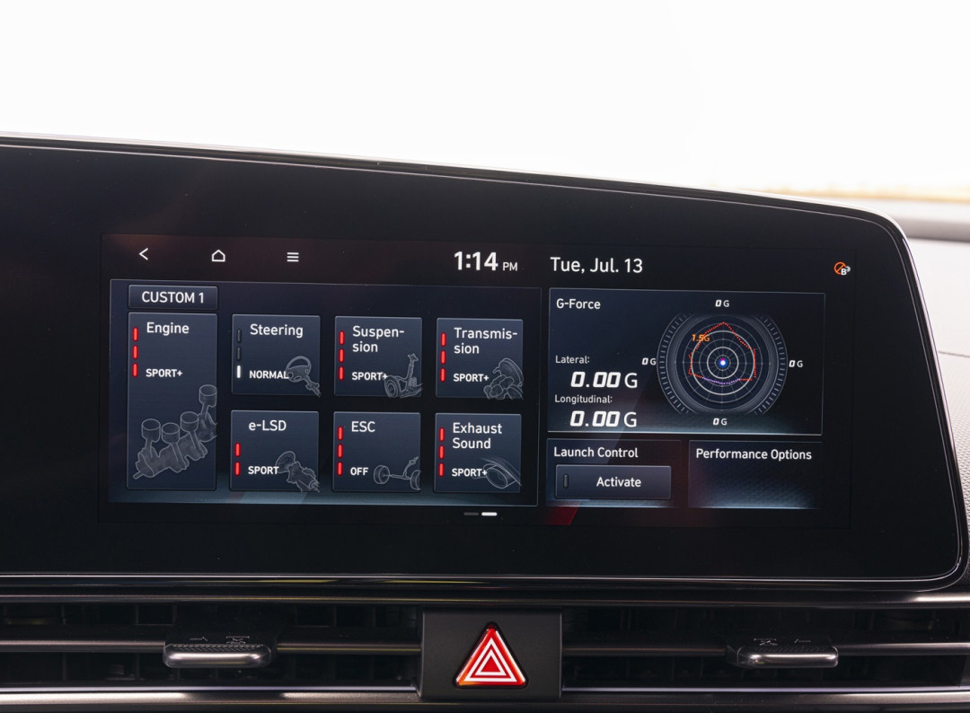 除了硬件上的提升,在软件上也有所区别,伊兰特N的娱乐系统将增加N系列专属采用和功能,支持增压、油温计、G值信息和单圈计时器等功能,营造出更赛道化的运动氛围。
