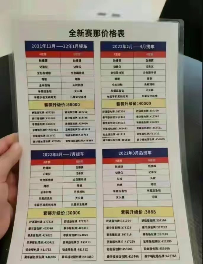 自从丰田赛那国产上市以来,热度一直居高不下,尤其是该车加价的话题一直争论不止,近日又曝出赛那“加价套餐”,价格从高到低分别为6万元、4万元、3万元和3888元。这份“加价套餐”还与提车时间相关,只要你加得够多,明年一月份就可以提车,甚至在年内完成提车;而如果你不想加太多钱,那就要等到明年九月份以后才能提车。