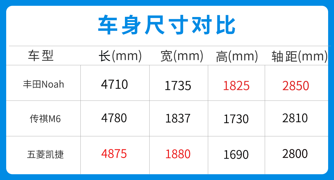 尺寸方面,作为参考,现款Noah长宽高分别为4710/1735/1825mm,轴距2850mm,与传祺M6、五菱凯捷等紧凑型MPV尺寸相当。不同的是,新车可提供“2+2+3”七座布局和“2+3+3”八座布局,满足不同人群的需求。