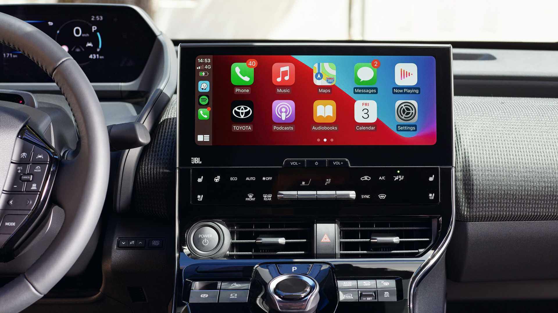 丰田bZ4x外观方面以Hi-Tech and Emotion为设计主题,前脸部分封闭式前格栅与狭长矩阵式LED大灯融为一体,银色镀铬装饰条进一步拉宽其前脸的视觉宽度,使整车看起来未来感十足。