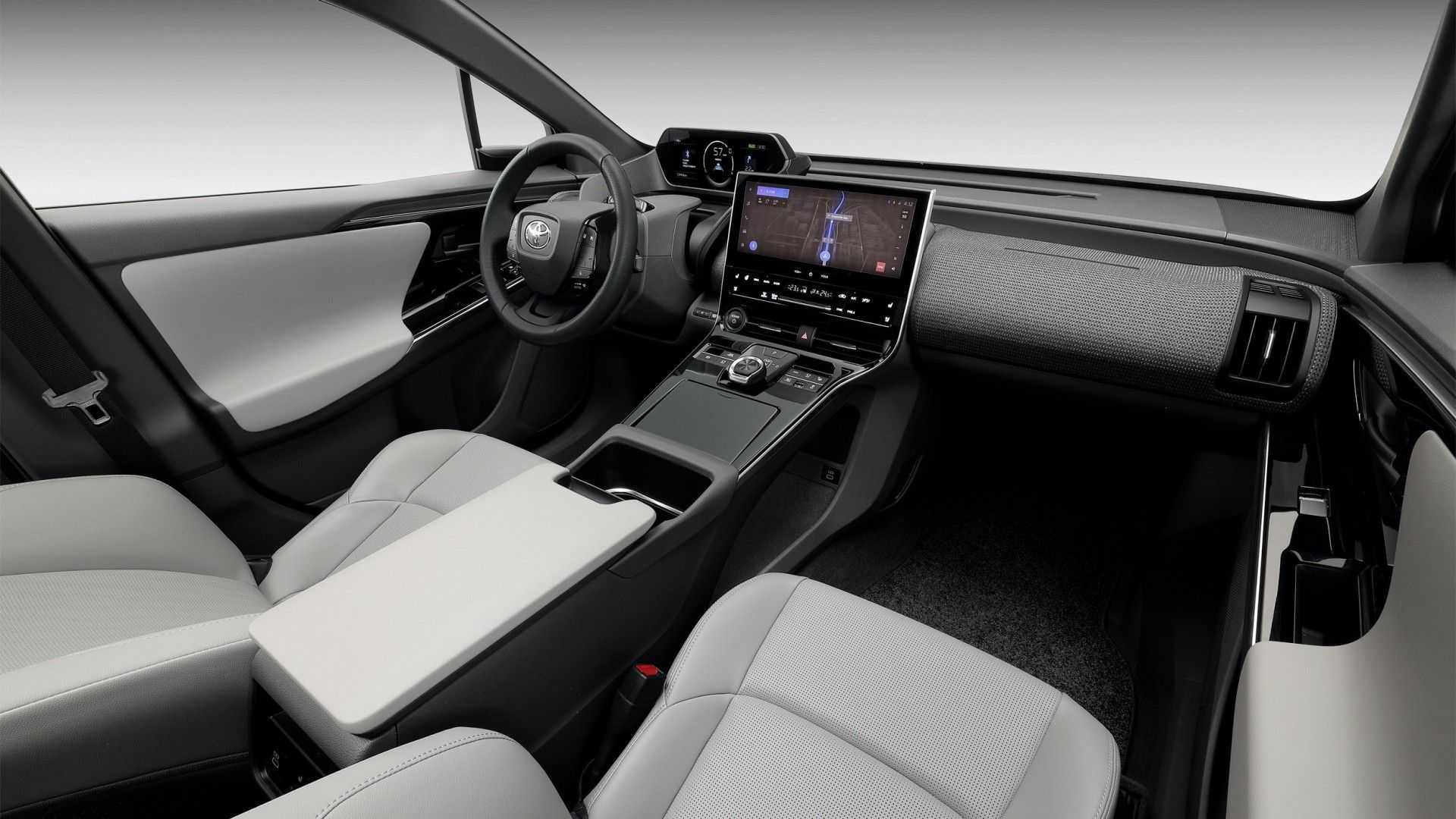 丰田bZ4x内座椅采用的是灰白配色,两者相互搭配营造出浓厚的居家氛围。