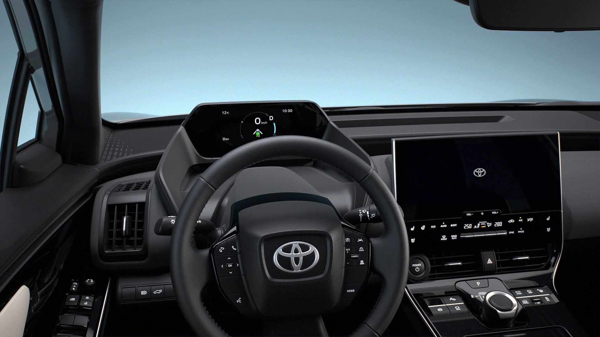 来到bZ4X的驾驶舱,可以发现其中控台更趋向于规整的布局设计,各个区域划分十分清晰,大尺寸液晶仪表盘和中控大屏双屏的加入凸显出一丝科技感,三幅式多功能方向盘保留叻众多实体按键,确实能俘获不少“喜欢按键”消费者的心。