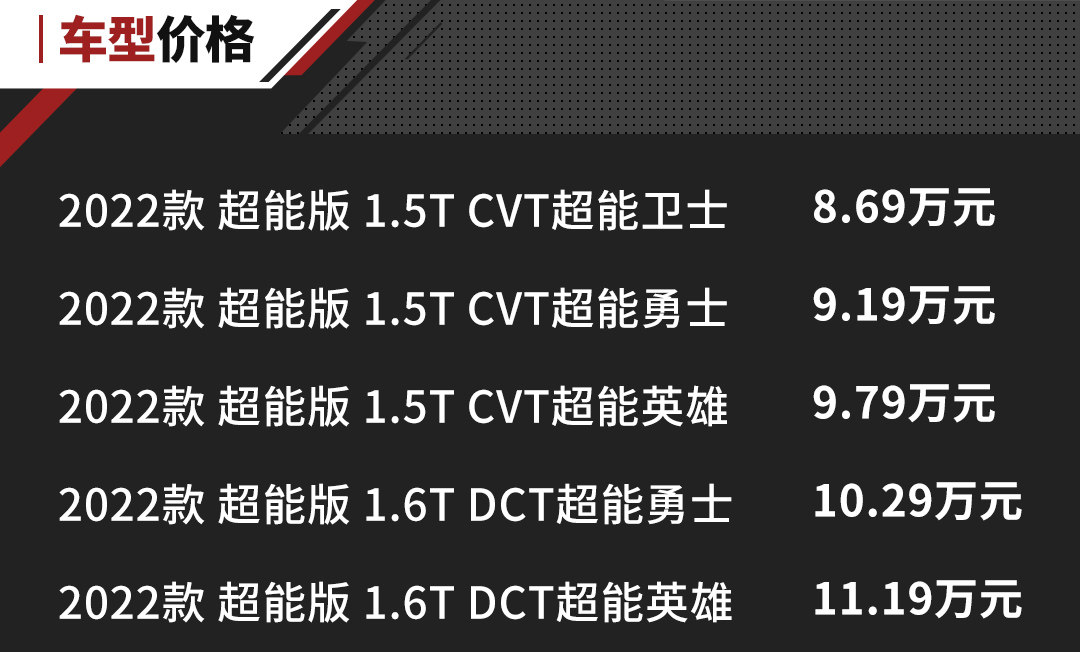 12月10日晚,2022款奇瑞瑞虎7超能版车型正式上市,指导价为8.69-11.19万元。新车共推出5款车型,包括1.5T+CVT和1.6T+7DCT两款动力组合。