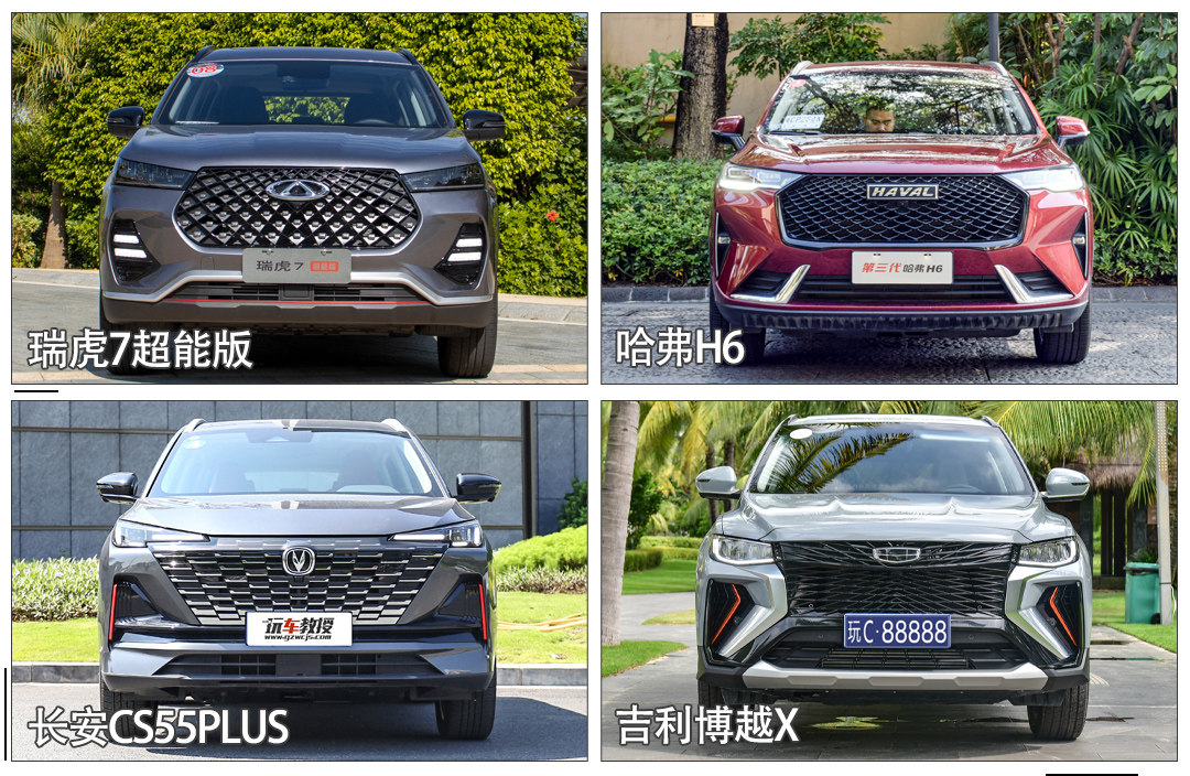 作为一款起售价8万出头的紧凑型SUV,瑞虎7超能版的竞争对手锁定在哈弗H6、长安CS55PLUS、吉利博越这三款车型上,这三者都可以说是这一级别的明星选手。