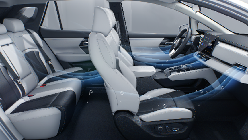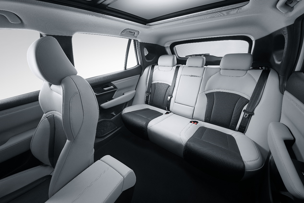 其次,与硬派的外观风格相比,阿图柯的内饰则尽显轻奢质感。首先中控台应用了三菱水平线造型理念,采用大面积软包材料覆盖,搭配双12.3英寸智能高清大屏,从视觉和触觉展现了东方美学。更关键的是阿图柯的人体工程学座椅采用菱形打孔设计及双缝线工艺,完美贴合人体曲线,提供了恰到好处的支撑感和包裹感。