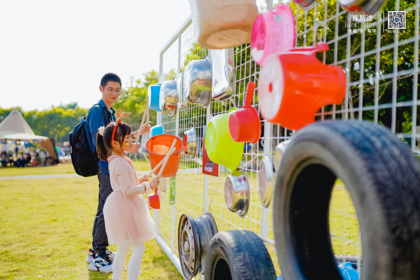 不仅如此,孩子们还可以在【魔法练习-MINI足球、手鼓、飞盘】中感受运动的乐趣;在【魔法点金棒-破铜烂铁打击乐】中体验音乐的魅力;在【魔法料理-草坪厨房烹饪】中尝到露营的美食。
