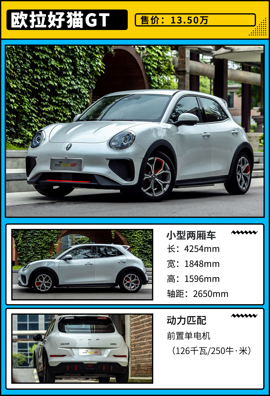 欧拉好猫GT也同样是复古造型,颇有一种大众甲壳虫的感觉,但它却是纯电动小钢炮,有着177马力的它,可以在6.9秒完成百公里加速,体感加速非常刺激,让你肾上腺素飙升,操控表现也超越了该价格的主流水平,考虑到13.50万的售价以及免购置税、使用便宜的特点,可比MINI更适合中国年轻消费者们。