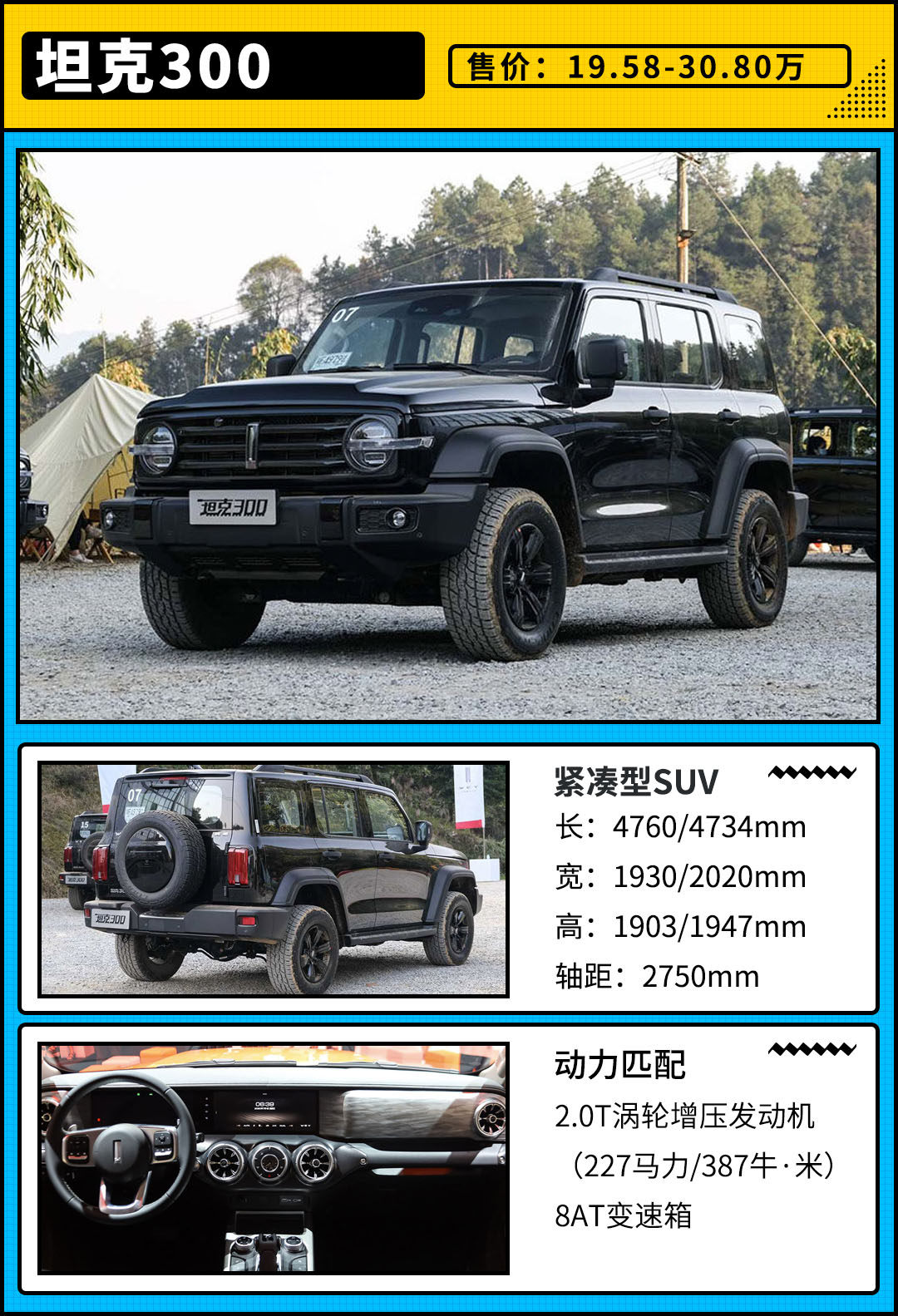 坦克300同样是硬派越野造型,平直的车身线条很有阳刚气息,性能还同样不差,227马力的2.0T发动机,配合8AT变速箱,还有分时/适时四驱以及差速锁,同样能带你去“诗与远方”,内饰还同样豪华,要是觉得还不够的话,内饰“白花花”的赛博坦克版本更奢华,而价格只要19.58万,还不到奔驰G级的1/8。