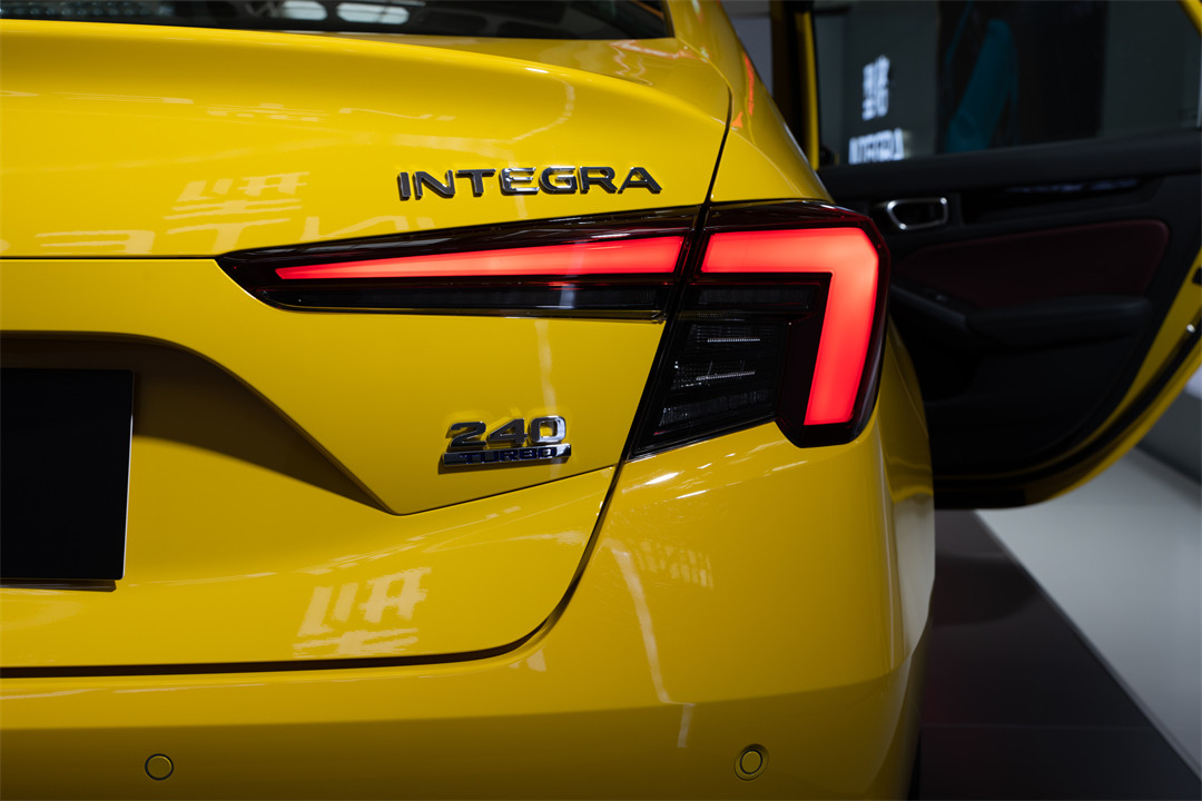 型格INTEGRA车尾设计更具层次感,尾灯组采用具有自身特色的“双7字型”尾灯组,点亮后带来璀璨的视觉效果,配合尾箱盖稍稍上翘的小鸭尾造型以及后扰流板,展现疾速运动性能。