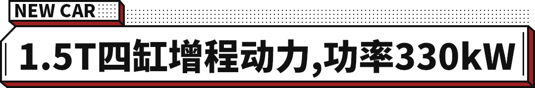 搭载1.5T四缸米勒循环增程式发动机,综合功率预计为330kW,峰值扭矩650N·m