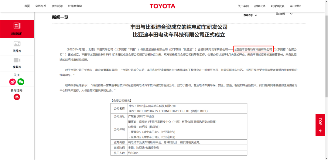 事实上,早在2019年的时候丰田就已经与比亚迪达成协议,双方共同研发轿车、低底盘SUV以及动力所需的电池组。而到了2020 年更是与比亚迪合股(各持50%股份),成立了比亚迪丰田电动车科技有限公司。