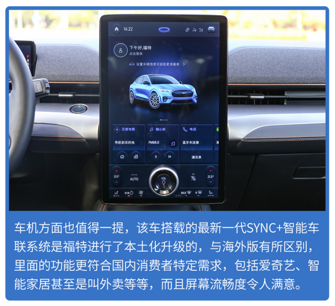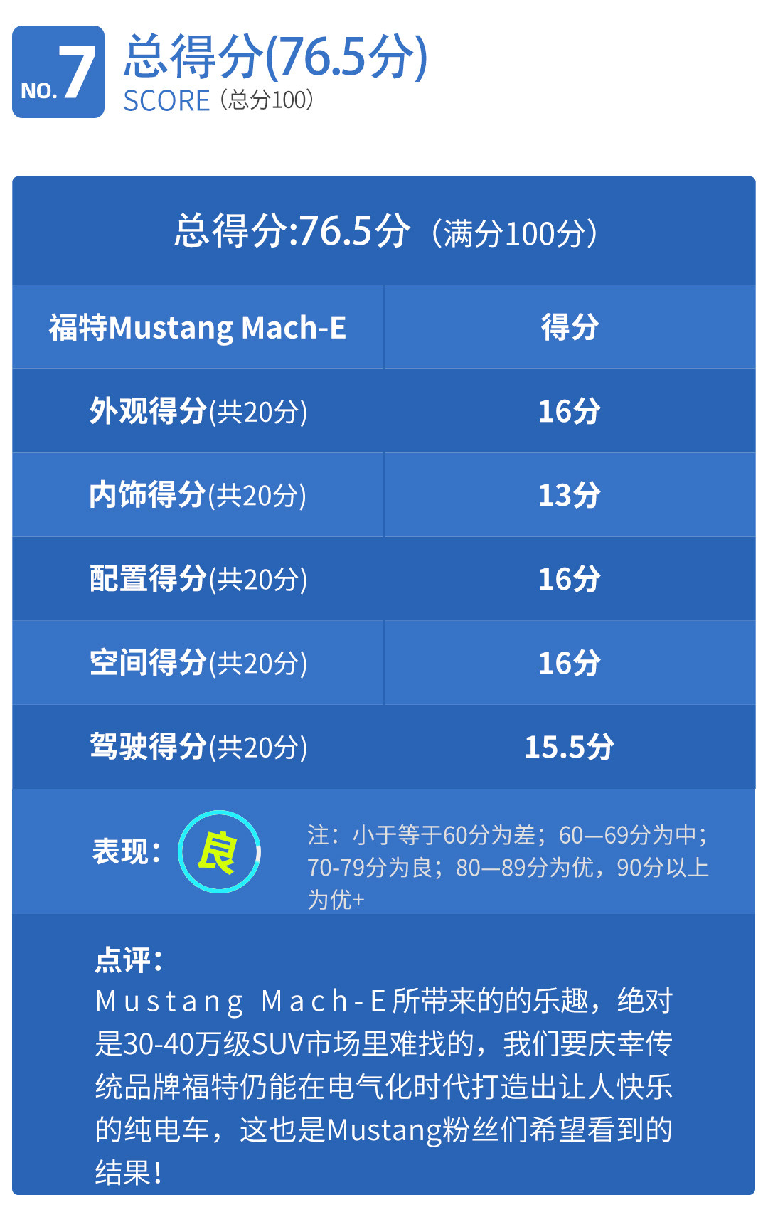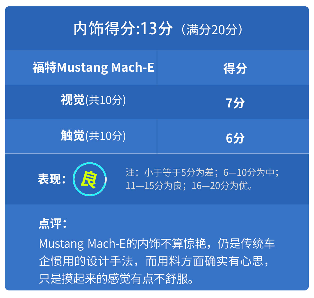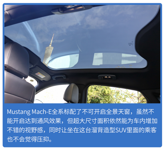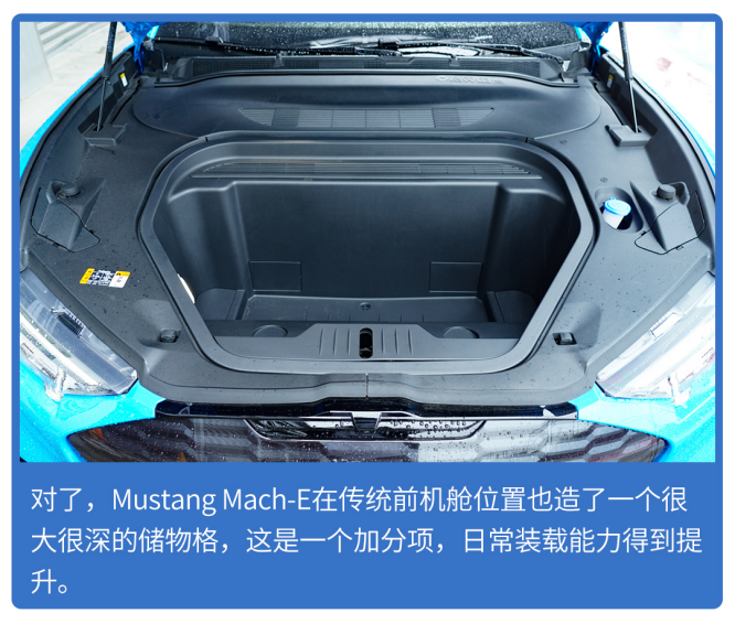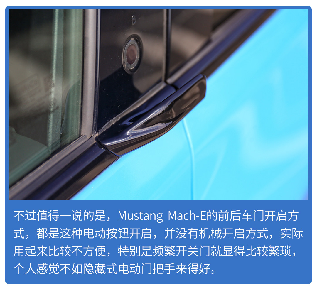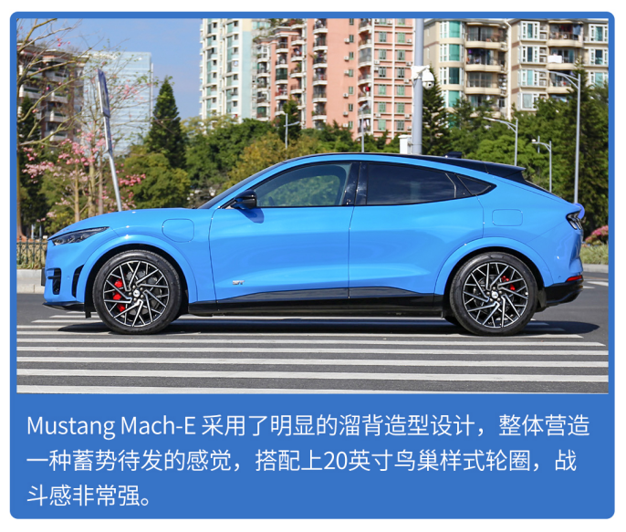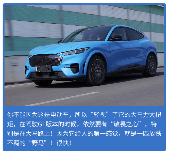 Mustang Mach-E在外形上就能给你一种强烈的运动感观,大溜背、低趴、肌肉感,再加上GT版这款“掠星蓝”配色,路上回头率非常高!绝对不负Mustang之名。