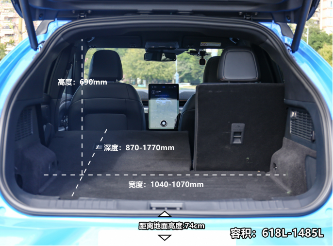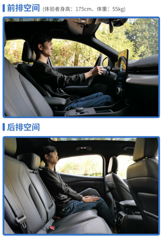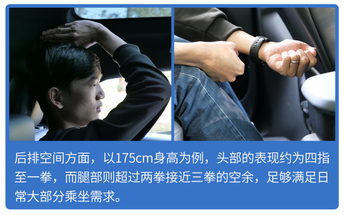 虽然空间能满足日常使用,但别忘了这款车的轴距数据是超过2.9米的,而且还是电动平台开发,所以后排空间的表现其实是不能与轴距水平相平等的,有些遗憾。