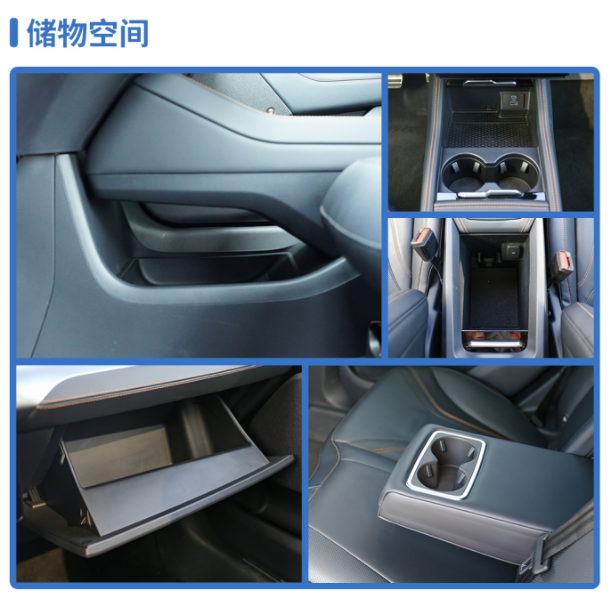 储物能力方面,该车车内储物格数量共有14个,其中我个人比较喜欢挡把台下方腾出的储物位置,另外中央扶手箱的容积也比较大,前后共有4个杯架,能满足日常使用了。