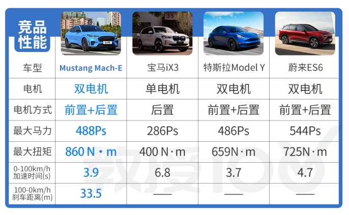 前后双电机、综合马力达到488Ps、综合最大扭矩达860N·m,这些数据就首先就证实了Mustang Mach-E GT版的威力,这依然是一台性能SUV应有的本质,即便它是以电的方式传输给你。