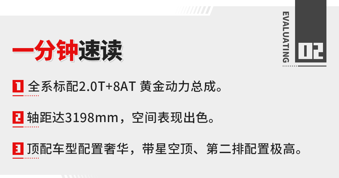 其次搭载了新一代黄金动力总成2.0T+8AT,发动机为蜂巢动力2.0T直喷发动机,最大功率165千瓦,峰值扭矩385牛·米,已经是合资对手的主流水平。