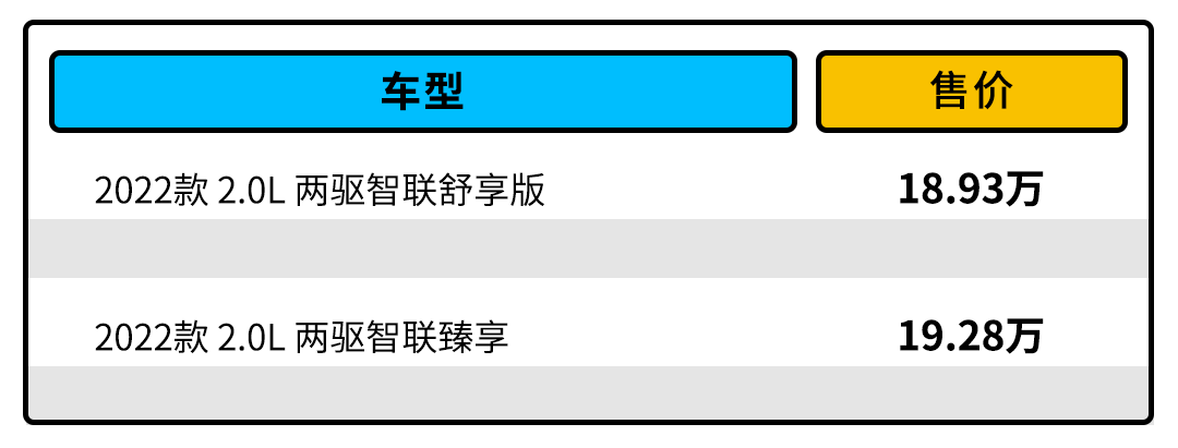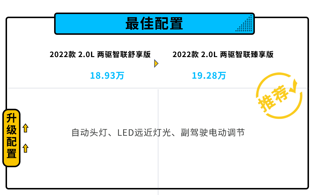 而卖的更贵的两驱智联臻享版相较于两驱智联舒享版在功能配置上升级了LED大灯、自动头灯、以及副驾电动调节。如果说在预算充足的情况下,选择智联臻享版也无可厚非,毕竟两款车型版本仅相差了3500元。
