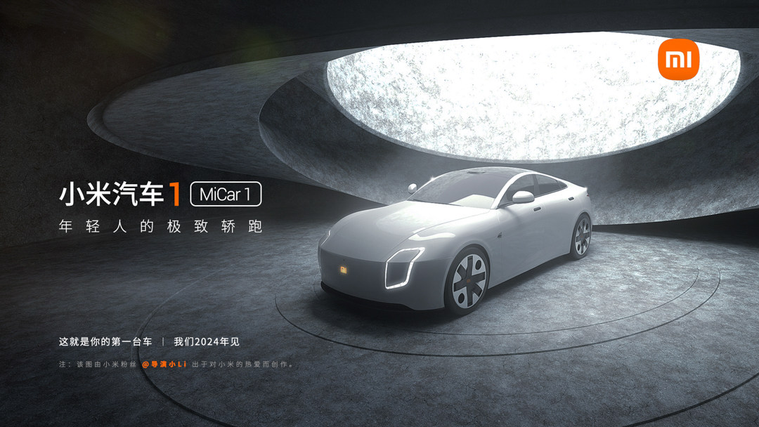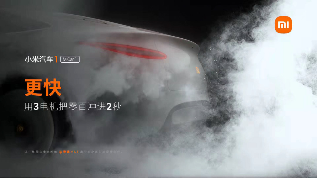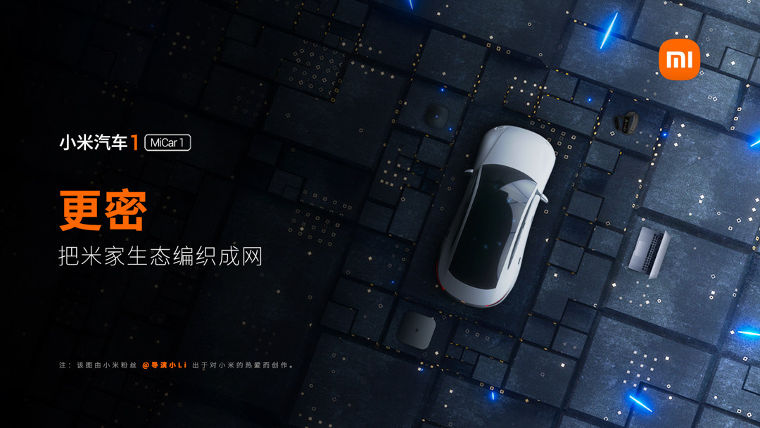 海报极简风的设计,加上小米LOGO及专属字体,是不是很有小米汽车的风格?但实际上这是来自小米粉丝——@导演小Li的自制作品。