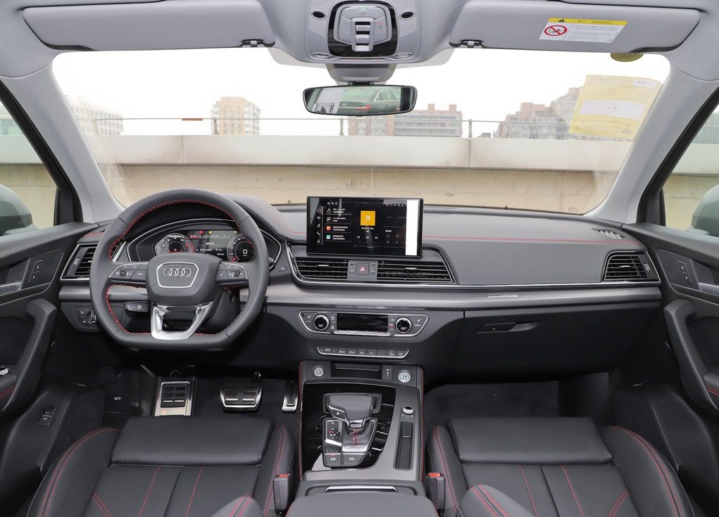 内饰方面,就没有外表那么光鲜靓丽了,依然是遭受大家吐槽的布局设计,配备了10.1英寸MMI中央触控显示、游艇式电子挡把、平底式三幅多功能方向盘以及12.3英寸奥迪“虚拟座舱”全液晶仪表,其中后者还支持地图全屏显示、新增鸟瞰式3D立体显示功能,并支持经典、运动、动感主题切换,这也是奥迪Q5L唯一拿得出手的东西。