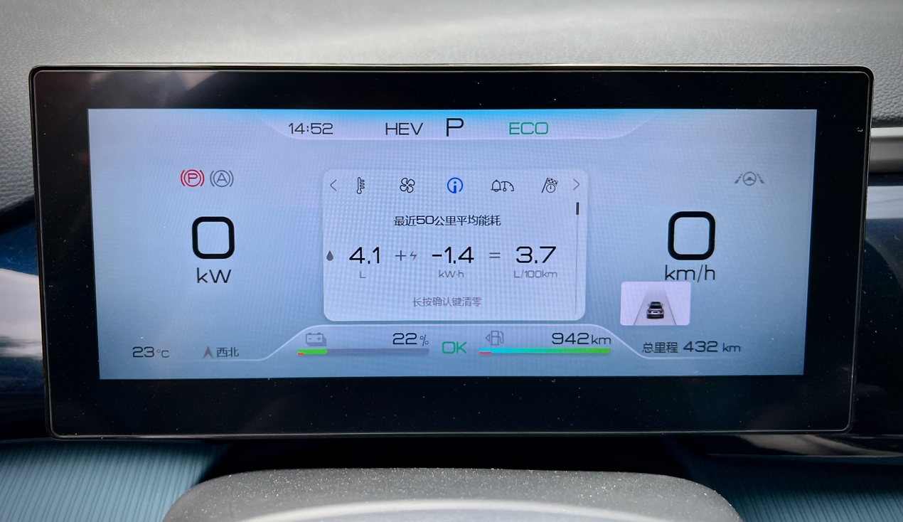 油耗测试,车辆统一为25%的馈电电量,通过计算实际加油量和行驶路程得出油耗成绩。之前我就参加过DM-i其他车型的油耗测试,所以出发前就预言,这次油耗测试,超过4L/100km的成绩肯定要垫底。