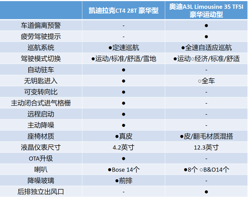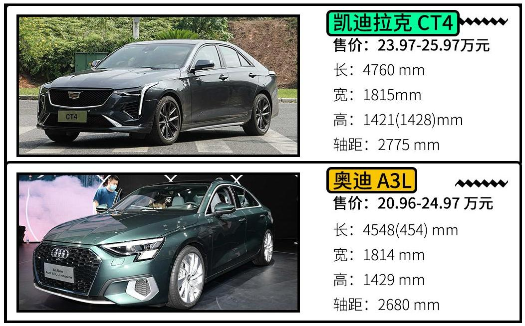 就拿凯迪拉克CT4的次顶配(豪华型)以及奥迪A3L的顶配运动版本(A3L Limousine 35 TFSI 豪华运动型)来做对比吧,二者差价在2,000元。
