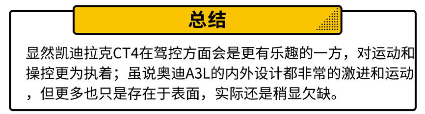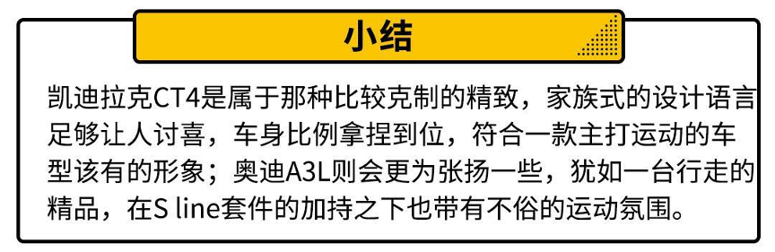 通过以上的对比分析,毫无疑问,对于更追求运动感、“爽感”的消费者,我更偏向于购买凯迪拉克CT4,毕竟它坚持后驱,拾起宝马3系所抛弃的操控,底盘调校也足够独到,虽然品牌知名度是稍弱于奥迪。至于长着一副精致面容的奥迪A3L,内饰的运动氛围也较为强烈,整体配置以居家和舒适性为主,比较适合追求颜值、轻松驾驶感的年轻人,只是你想要更高配置就得多花钱。这两款风格截然不同的入门豪华车型,自然还得各位根据自身需求选择。