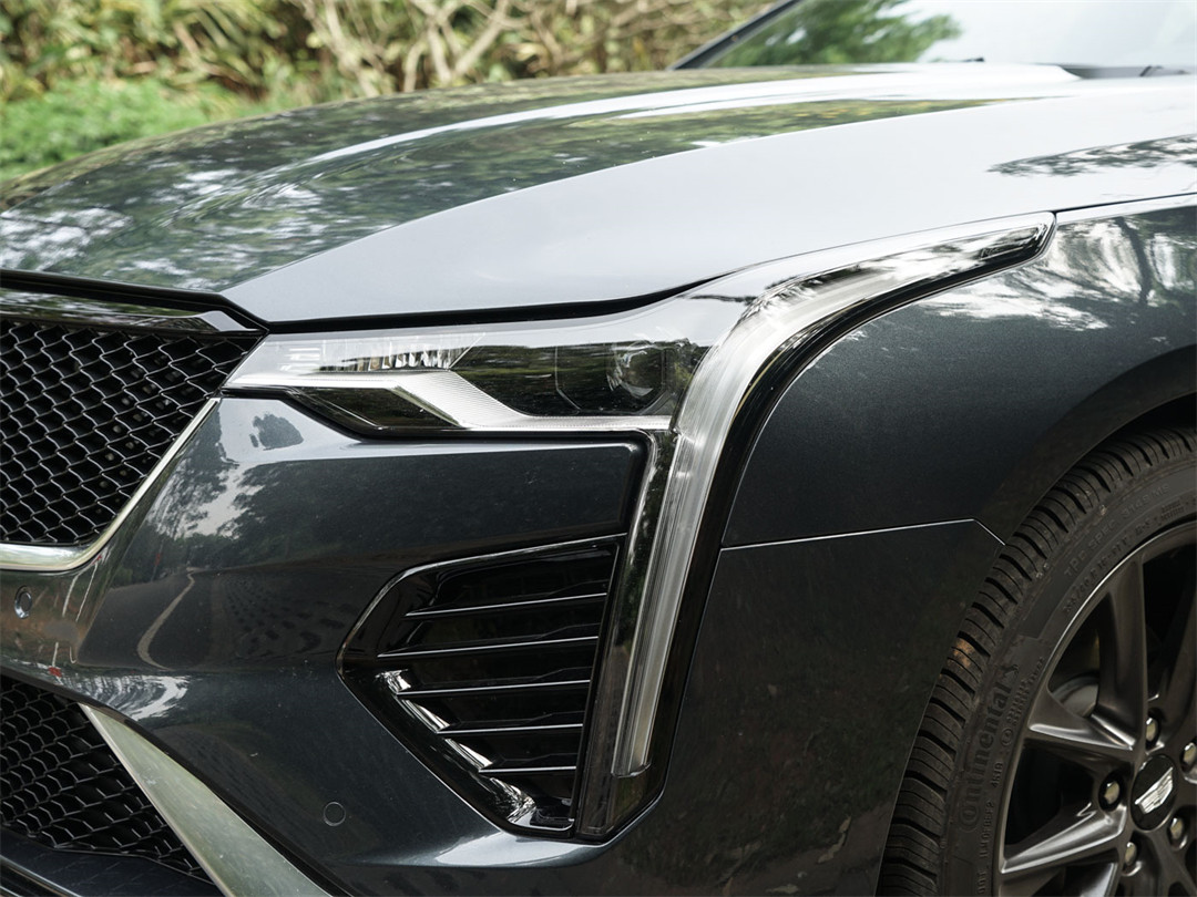 凯迪拉克CT4在外观方面,最为吸睛的当属它的家族式前脸设计,两侧细长的前大灯以及闪电式LED日行灯设计,视觉冲击感十足。车侧的腰线从车头一直延伸至车尾,落落大方,简约而不失优雅,精致度也提升了不少。