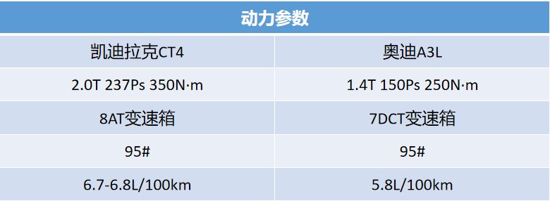动力方面,凯迪拉克CT4全系均配备2.0T发动机,最大马力为237Ps,峰值扭矩为350N·m,与之匹配的是8AT变速箱。而奥迪A3L则全系配备1.4T发动机,最大马力为150Ps,峰值扭矩为250N·m,与之匹配的是7DCT变速箱。从数据层面上看,凯迪拉克CT4动力明显更有优势,但油耗表现自然是小排量的奥迪A3更出色,所以要想要“爽”,那还得付出一点代价。