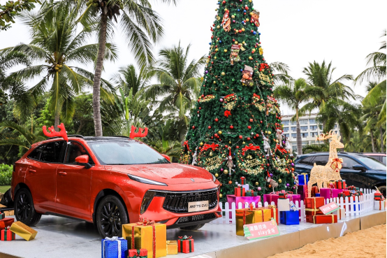 试驾活动结束后,平安夜狂欢派对的时候到了。圣诞树、风行T5 EVO热浪版、国风版、还有红色风行T5 EVO装扮的麋鹿悉数亮相,将圣诞氛围和逼格都拉满。