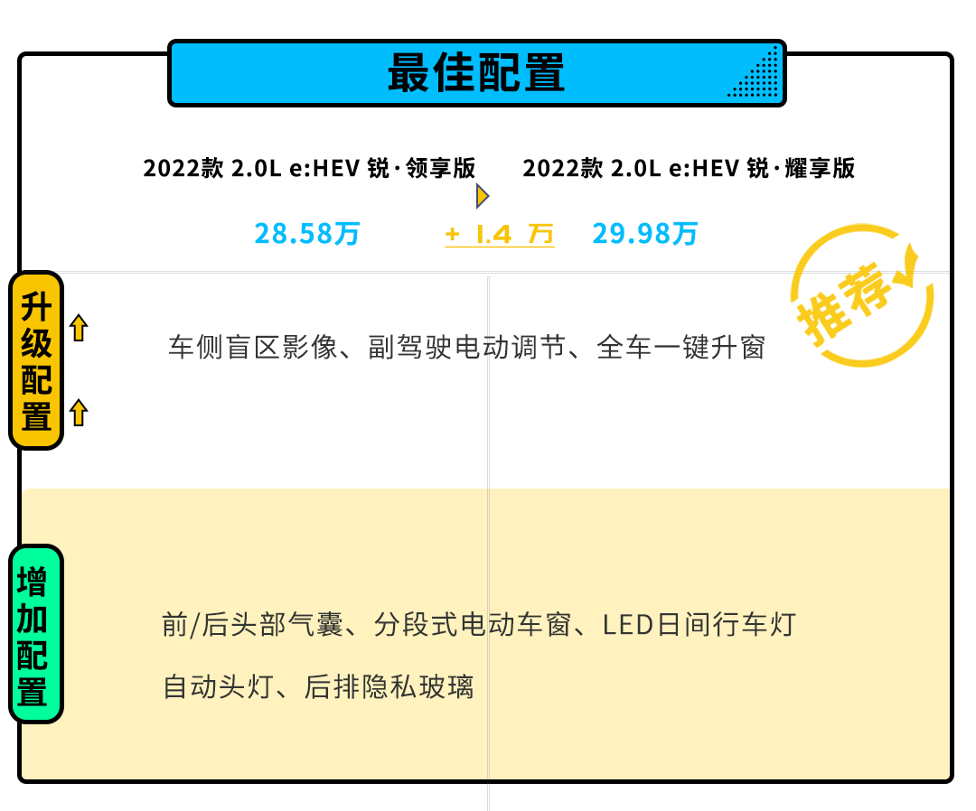 细细斟酌配置信息之后,发现虽然奥德赛的起步定价只有区区23.58万。但其实考究配置的话,会发现低配入门锐·悦享版似乎只是为了拉低奥德赛消费门槛而已。除了配备上述配置功能、像一些车道保持、全速自适应巡航、真皮座椅、无线充电、中控液晶屏以及车机系统等其它智能选项要在“次低配”的锐·智享版及以上才有,换句话说这个“次低配”可一点也不低配。毕竟和入门低配锐·悦享版相差4万指导价呢。