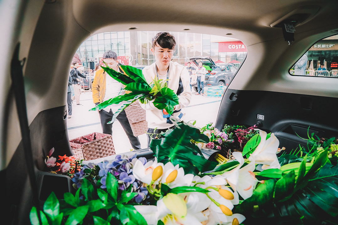 “明日花店”主题将多种多样的花进行陈列摆放变为现实,其中得益于2022款CS75PLUS后排座椅完全平放功能,实现了1450升超大后备箱空间,参与设计的设计师和车主将此作为了整个场景的视觉聚焦点。