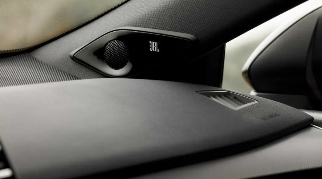 内饰会应用大量黑色打孔软性材质覆盖,配备9英寸触控屏、电动天窗以及8个扬声器的音响系统,此外,还可以选装升级14个扬声器的JBL品牌音响系统。