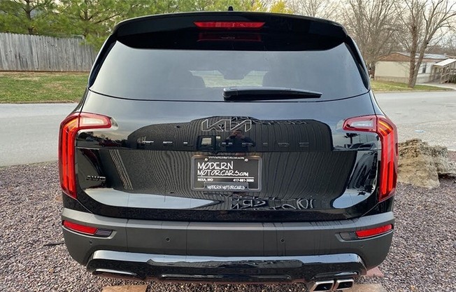 来到尾部,起亚Telluride显得格外简洁,并没有使用过多复杂的线条进行修饰。尾灯部分并没有采用了时下流行的贯穿式大灯设计,而是配备了分体条状式尾灯,尾灯点亮后带来璀璨得效果,非常符合年轻消费群体的审美。
