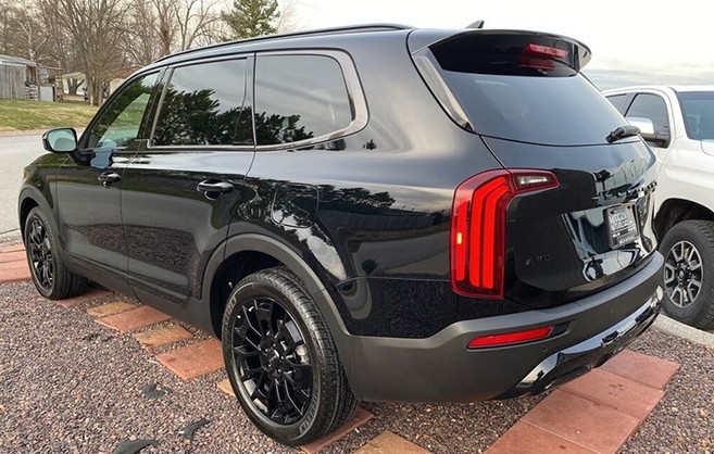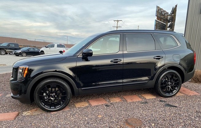 从起亚Telluride车身侧面来看十分修长,协调的车窗比例营造出中型SUV大空间既视感,凌厉的车身腰线从前翼子板处往后贯穿至车尾,前车门处沿用了相对潮流的内凹设计,辨识度极高。而熏黑多幅式轮毂的加入,使整车视觉效果更具年轻化,确实能吸引部分年轻消费者。
