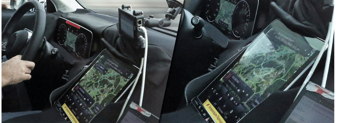 而这次内饰造型也是首次曝光,从图片上可以看出来,整个造型与S级非常接近,同款的竖式大屏、全液晶仪表盘,极具科技氛围,这也将是奔驰未来主流的设计风格。