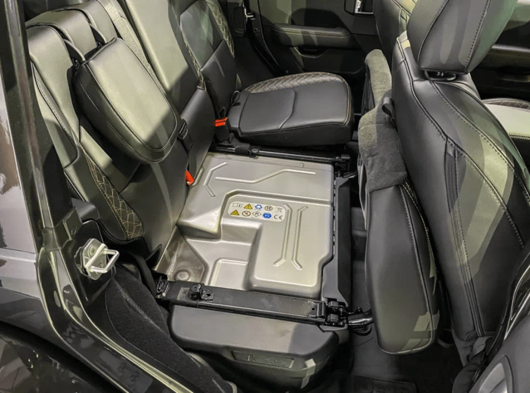 所以作为越野专家的Jeep就很聪明,先安排插混版牧马人试试水,由于电池体积相比纯电动越野车要小不少,所以能够将它安排在全车最安全的地方——座椅下方。既保证了乘坐空间,又避免了外界环境的影响。