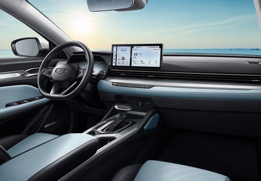 至于在内饰方面,吉利帝豪L内饰采用酷似星越L的设计风格,丹蓝色内饰具有浓厚的国潮风格,中控台则运用了古琴造型进行设计,细节部分还采用激光镭雕工艺,勾勒出精致细腻的纹路。